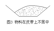 轉(zhuǎn)載點處物料的落料位置對皮帶的跑偏有非常大的影響,尤其在兩條皮帶機在水平面的投影成垂直時影響更大。通常應當考慮轉(zhuǎn)載點處上下兩條皮帶機的相對高度。相對高度越低,物料的水平速度分量越大,對下層皮帶的側(cè)向沖擊也越大,同時物料也很難居中。使在皮帶橫斷面上的物料偏斜,**終導致皮帶跑偏。如果物料偏到右側(cè),則皮帶向左側(cè)跑偏,反之亦然。在設計過程中應盡可能地加大兩條皮帶機的相對高度。在受空間限制的移動散料運輸機械的上下漏斗、導料槽等件的形式與尺寸更應認真考慮。一般導料槽的的寬度應為皮帶寬度的三分之二左右比較合適。為減少或避免皮帶跑偏可增加擋料板阻擋物料,改變物料的下落方向和位置。 在皮帶上的物料不居中見圖3