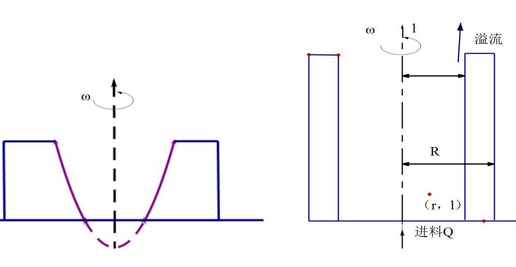 離心機開動后,因轉鼓的帶動,使轉鼓內液體在受重力作用的同時,還受到離心力的作用,形成一個旋轉的自由表面(如圖)