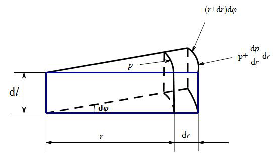 0沿軸向課認為是常數,從而離心壓力沿軸向也可近似的看作常數。因此,上述情況(r