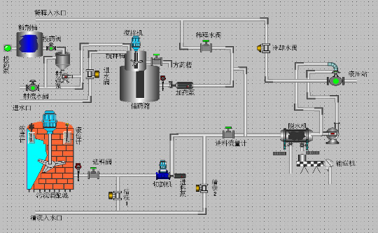 (3)連接,就是畫(huà)面上的圖素以怎樣的動(dòng)畫(huà)來(lái)模擬現(xiàn)場(chǎng)設(shè)備的運(yùn)行,以及怎樣讓操作者輸入控制設(shè)備的指令。