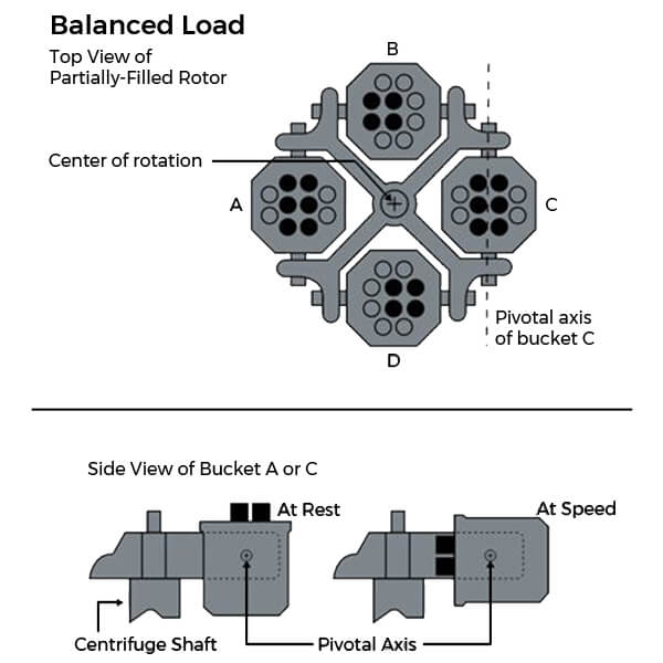 大多數(shù)離心機(jī)配備有不平衡檢測(cè)器,在由負(fù)載不平衡引起的任何偏心旋轉(zhuǎn)可能損壞驅(qū)動(dòng)軸或軸承之前關(guān)閉離心機(jī)。然而,即使不平衡不足以觸發(fā)該探測(cè)器,管道在載體或適配器中的不正確分布也會(huì)導(dǎo)致分離不良。在這些情況下,鏟斗在運(yùn)行期間不會(huì)樞轉(zhuǎn)到所需的水平位置,導(dǎo)致在減速期間密度差的分離或沉積材料的重新混合。而且,當(dāng)鏟斗在操作速度下不是水平時(shí),在運(yùn)行期間管破裂的可能性大大增加。
