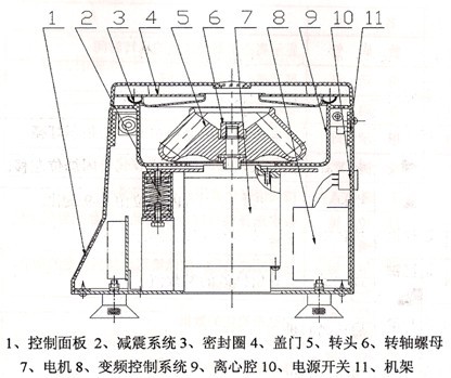 該儀器結(jié)構(gòu)緊湊,采用優(yōu)質(zhì)工程塑料吸塑而成,轉(zhuǎn)子直接由電機(jī)驅(qū)動(dòng),減震系統(tǒng)采用能自動(dòng)調(diào)節(jié)平衡的裝置,電器控制精確,操作方便,其結(jié)構(gòu)簡(jiǎn)圖如下所示: