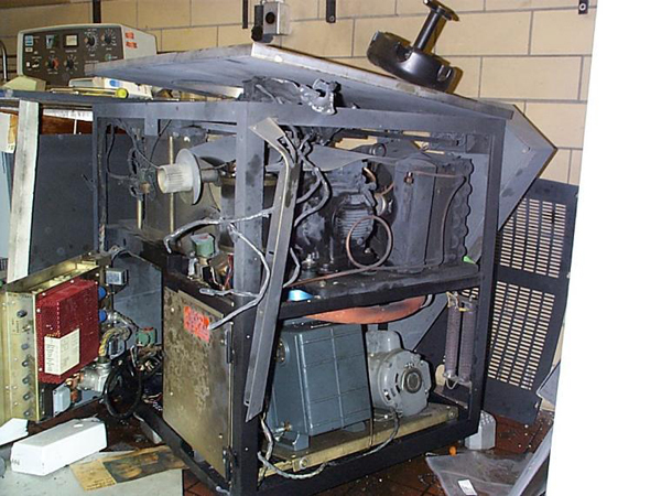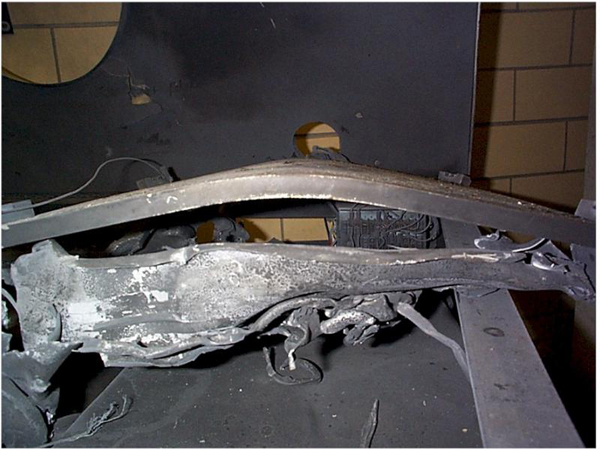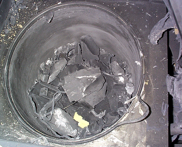 隨后的爆炸徹底摧毀離心機(圖1)在單位安全防護沒有包含所有的金屬碎片。半英寸的扣允許片段,包括鋼轉(zhuǎn)子頂部單元的頂部厚推拉塑鋼門,逃生(圖3)。片段毀了附近的冰箱,除了使在墻壁和天花板孔超低溫冰箱冷凍。該單位本身側(cè)身走,破壞包含百余容器的化學品(圖4)柜和貨架。幸運的是,推拉柜門掉落到地板上,打破防止容器。從事故的沖擊波震碎房間中的所有四個窗口。沖擊波還破壞了控制系統(tǒng)的孵化器和震撼的內(nèi)墻導致擱置在墻上崩潰(圖5)。幸運的是,房間里當時沒有占*,沒有人員受傷。